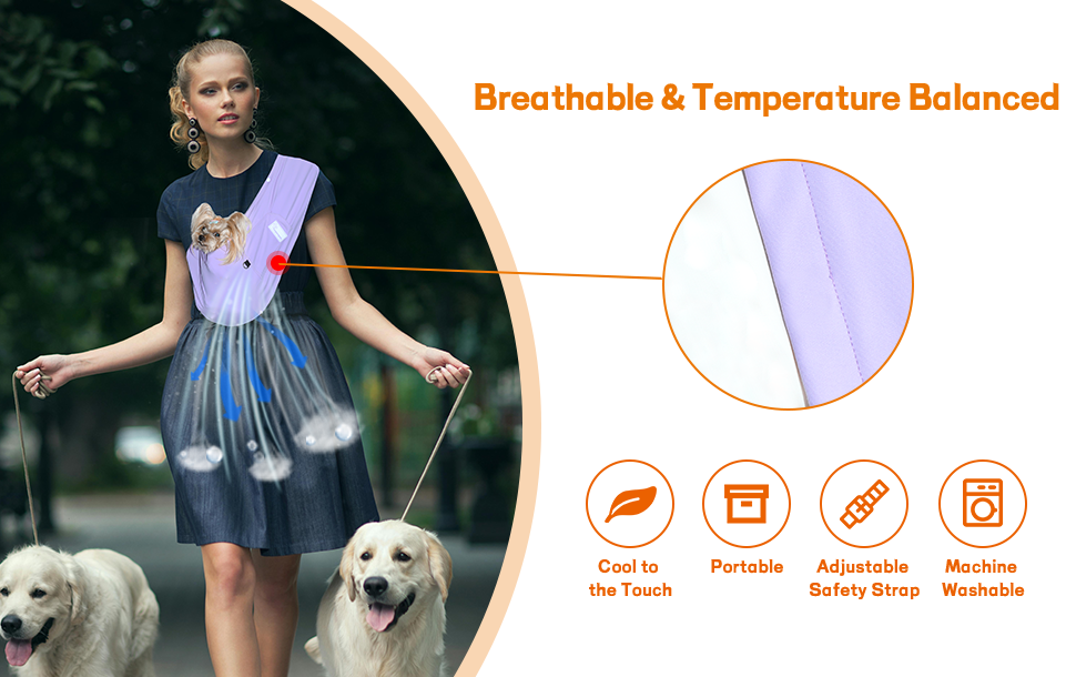 - Cooling Ice Silk Fabric:Crafted from ultra-soft and breathable ice silk, this pet sling offers a refreshing experience for your furry companion — ideal for warm climates and summer walks.